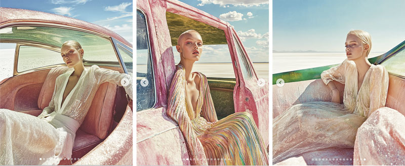 Fig. 1: AI-generated fashion images, created with Midjourney, Instagram post by