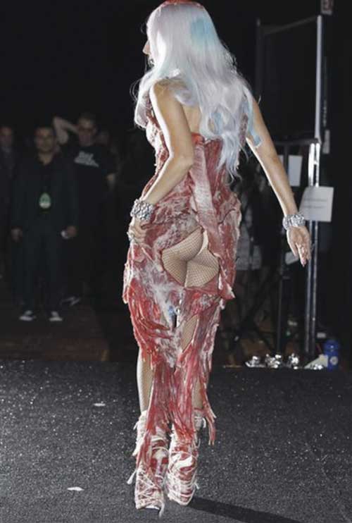 Lady Gaga, MTV Video Music Awards für Bad Romance in Los Angeles, Nokia Theater, 12.09.2010, meat-dress von Franc Fernandez und Alexander McQueen